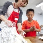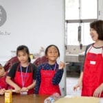 Rhea老師在課程一開始先為大家解說地理的基本常識與火山的基本構造,接著大家便分組開始為火山塑形,手繪背景並灑上亮粉。在課程休息的點心時間裡,孩子們開心享用了新鮮的水果串點心。