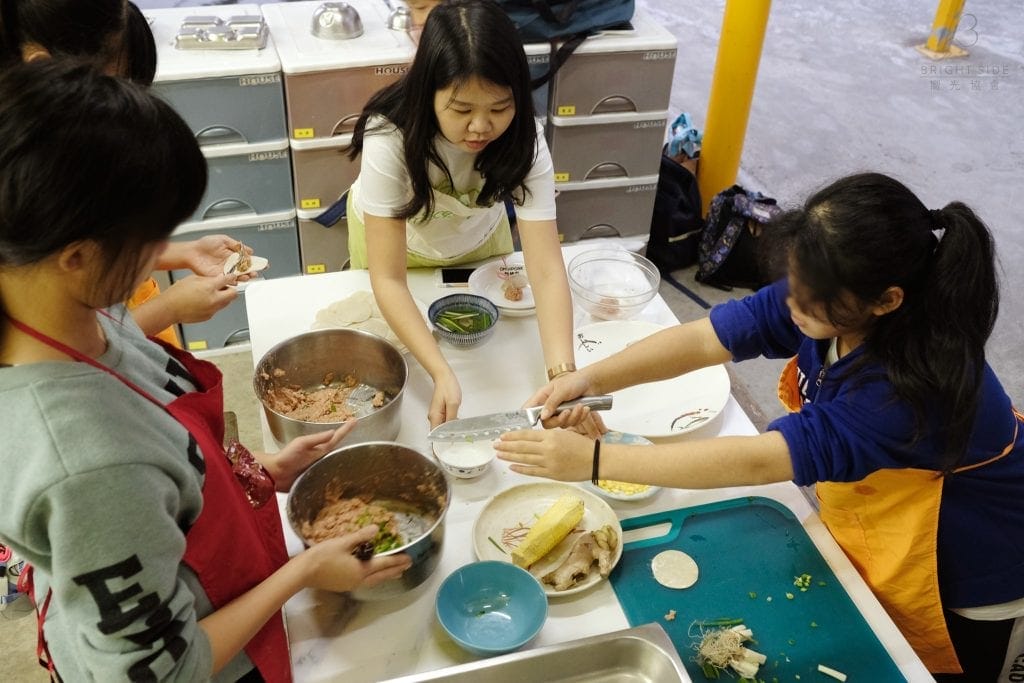活動一開始,Green Monday Taiwan的大朋友介紹了氣候變遷及全球暖化危機下地球的現況。我們飼養牛、羊、豬、雞等等動物而提高了全球平均碳排放量及甲烷排放量造成溫室效應更劇烈發展。也因為這樣能夠替代肉類的食品近年來相繼出現在市場,其中就有我們今天用的OmniPork 新豬肉。世新老師接著教大家製作純素玉米丸子、蔥花丸子還有水餃。這也是在氣候變遷下,我們能在日常生活中作出的應變對策之一唷!