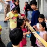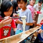 J: The last time I was in ChingChuan it all seemed the same – the homes, the mountains, basically the facade. However, the children have all grown up. The kids I once knew have all left perhaps to further their education elsewhere. That day we made sushi, ate sushi, did yoga, introduced “nagashi somen” or flowing noodles, and heard the news that back in Taipei city it was raining hard while the sun was out where we were. Halfway through the class Jr Lung, now grown up, suddenly appeared. He said nothing and did not want to get too close to the venue. However, despite this, he remembered each and every person who had come to ChingChuan before. We stayed under the same awning for ten minutes not saying a word. When I went to refill my bowl of soup he had disappeared. In just a flash, the children become teenagers, the teenagers leave these nestled mountains and I wonder if they will remember this day where we were together making sushi, eating sushi, partnering for yoga at the schoolyard, using chopsticks to capture the noodles.