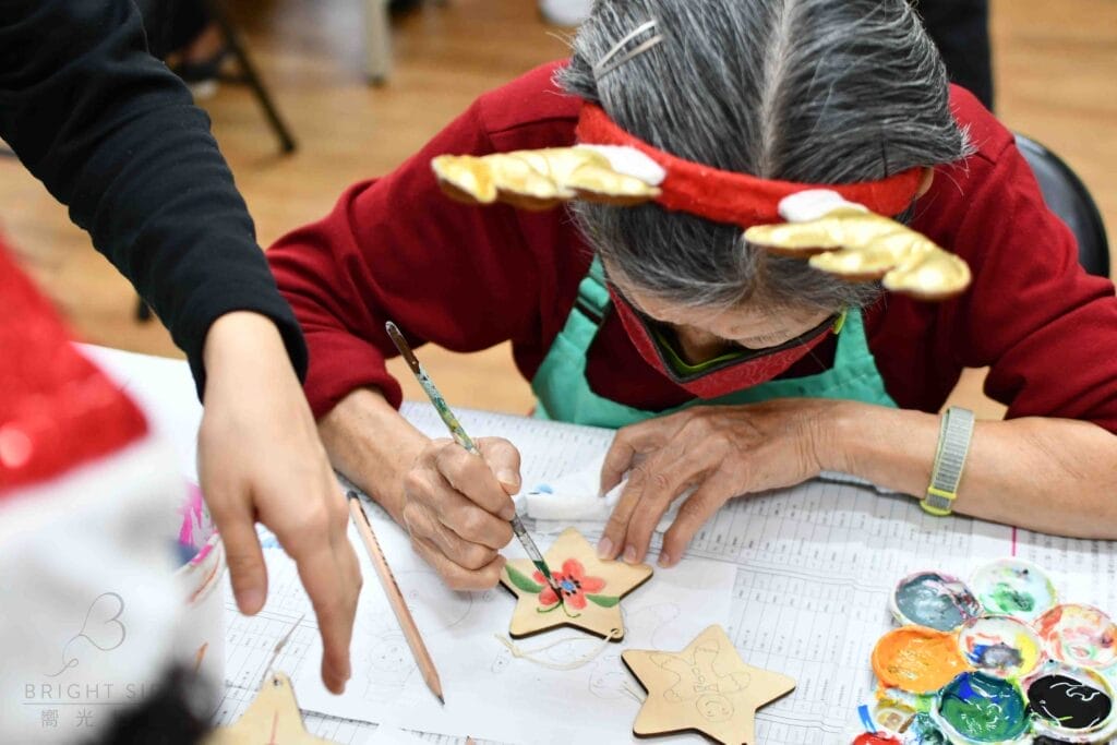 等待餅乾烘烤的期間,我們與樂齡一同彩繪祈福吊牌並裝飾聖誕樹,樂齡從草稿描繪、寫下感謝的話、底色選擇、筆刷選擇到著色,每一個步驟樂齡都有自己的想法,並專注屬於自己獨一無二的作品,最後的成果令人驚艷,大家務必欣賞相簿展示的作品!