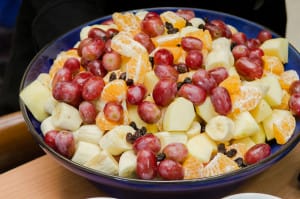 Fresh fruit salad before coconut milk drizzled